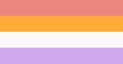 18:16, 11 June 2021 Lesbian by apersnicketylemon.png (file) 1 KB   https://apersnicketylemon.tumblr.com/post/175986631432/nice-cleaned-up-version-of-my-lesbian-flag {{quote|Purple is for Non binary and trans lesbians, and to represent the violets that were given between women to represent their love. Pink is for Lipstick and femme lesbians, and to represent the beauty of feminine love Grey is for aspec lesbians, and to represent the difficulty navigating the ‘grey area’ of society, where our love was forbidden and is still rejected by society Blue is for... 1